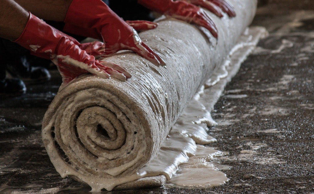 With a fully natural production process our rugs leave no harmful trace. We use exclusively plant-based dyes to color the wool, while the felting process requires only olive soap and hot water, no chemicals.